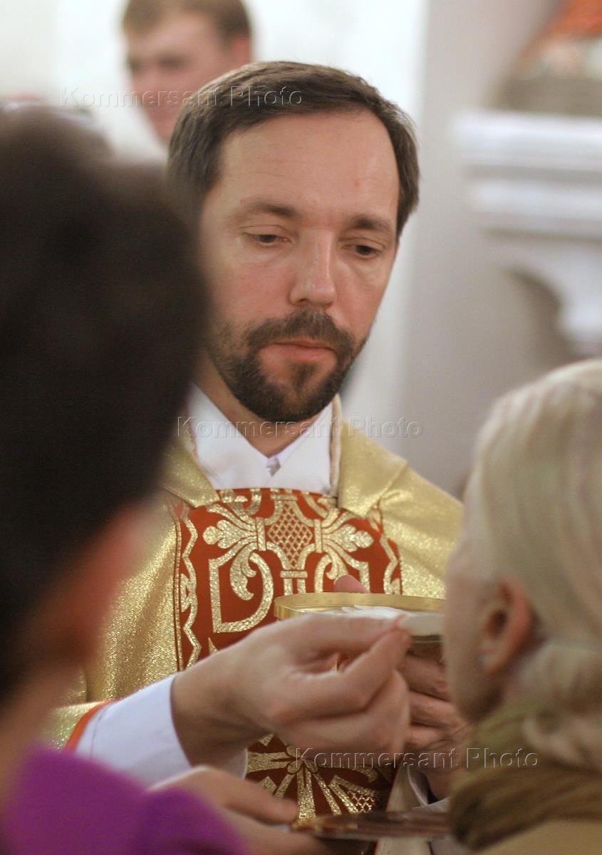 Священник ордена Римско-католической церкви "Общество Иисуса" (орден иезуитов) Отто Мессмер во время Рождественской службы 24.12.2005 года в костеле Святого Людовика.
