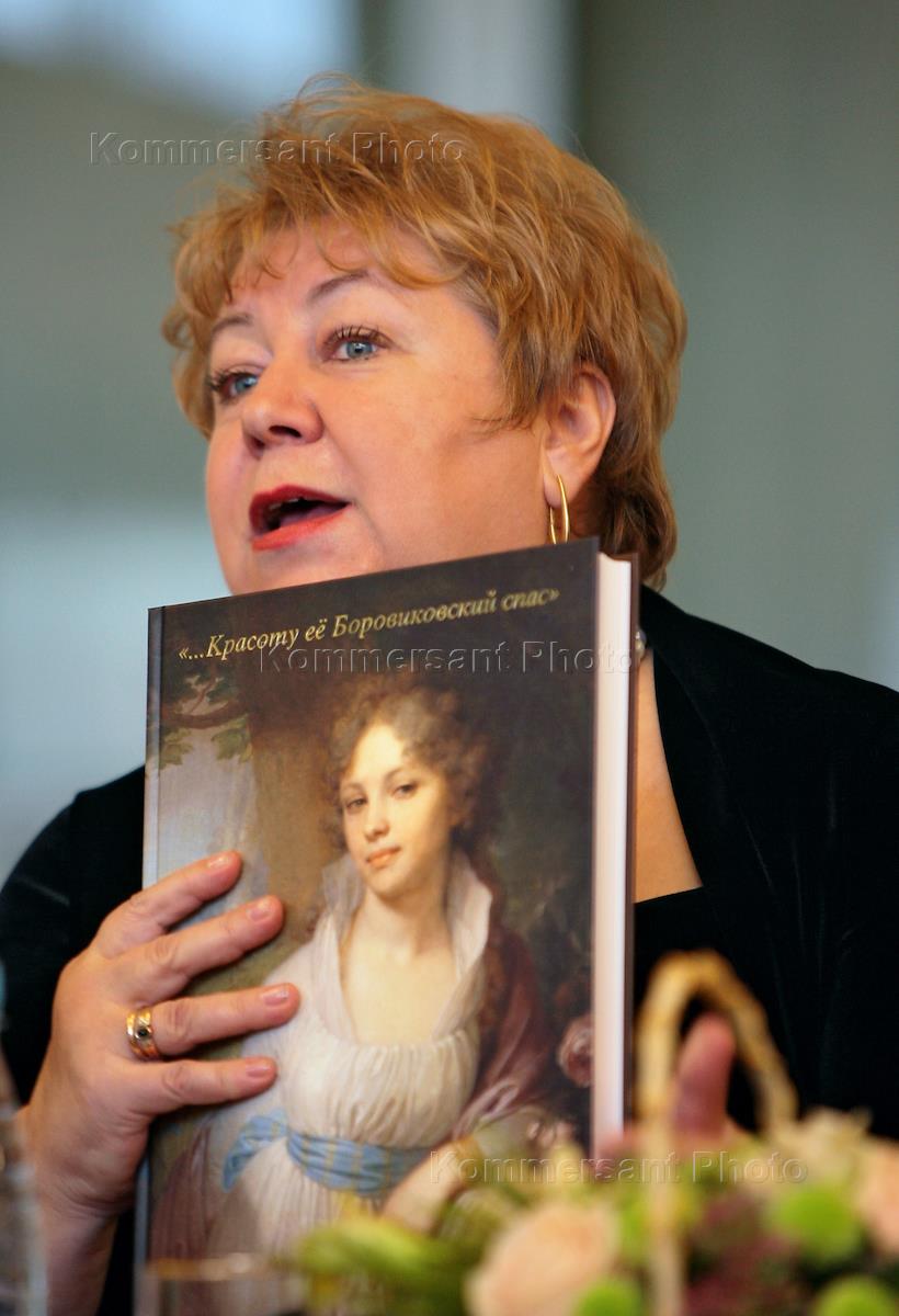 Заведующая отделом живописи XVIII — XIX веков Государственной Третьяковской галереи Людмила Маркина на пресс-конференции в день открытия выставки, посвященной 250-летию со дня рождения художника Владимира Боровиковского, в Государственной Третьяковской галерее (ГТГ)на Крымском валу.