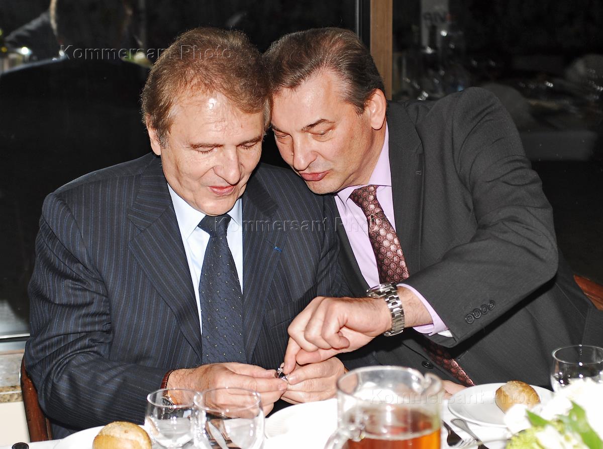 Президент компании Tissot Франсуа Тьебо (слева) и президент Федерации хоккея России (ФХР), первый заместитель председателя комитета Государственной думы России по физической культуре и спорту Владислав Третьяк (справа) на презентации новой коллекции часов Tissot в гостинице "Ренессанс".