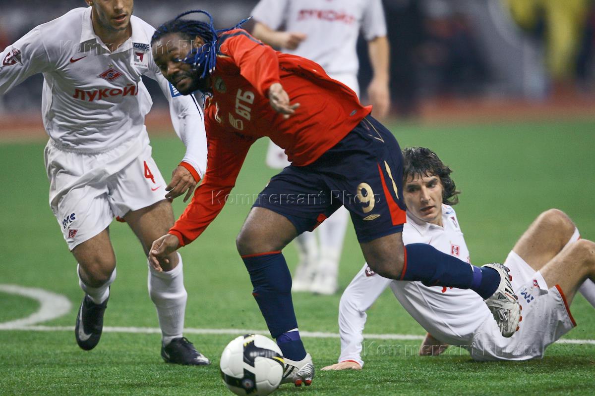 27th round of the Russian football championship. A game between CSKA (Moscow) and Spartak (Moscow) at the Luzhniki arena. Malik Fathi (left), Vagner Love (center) and Sergey Kovalchuk (right).