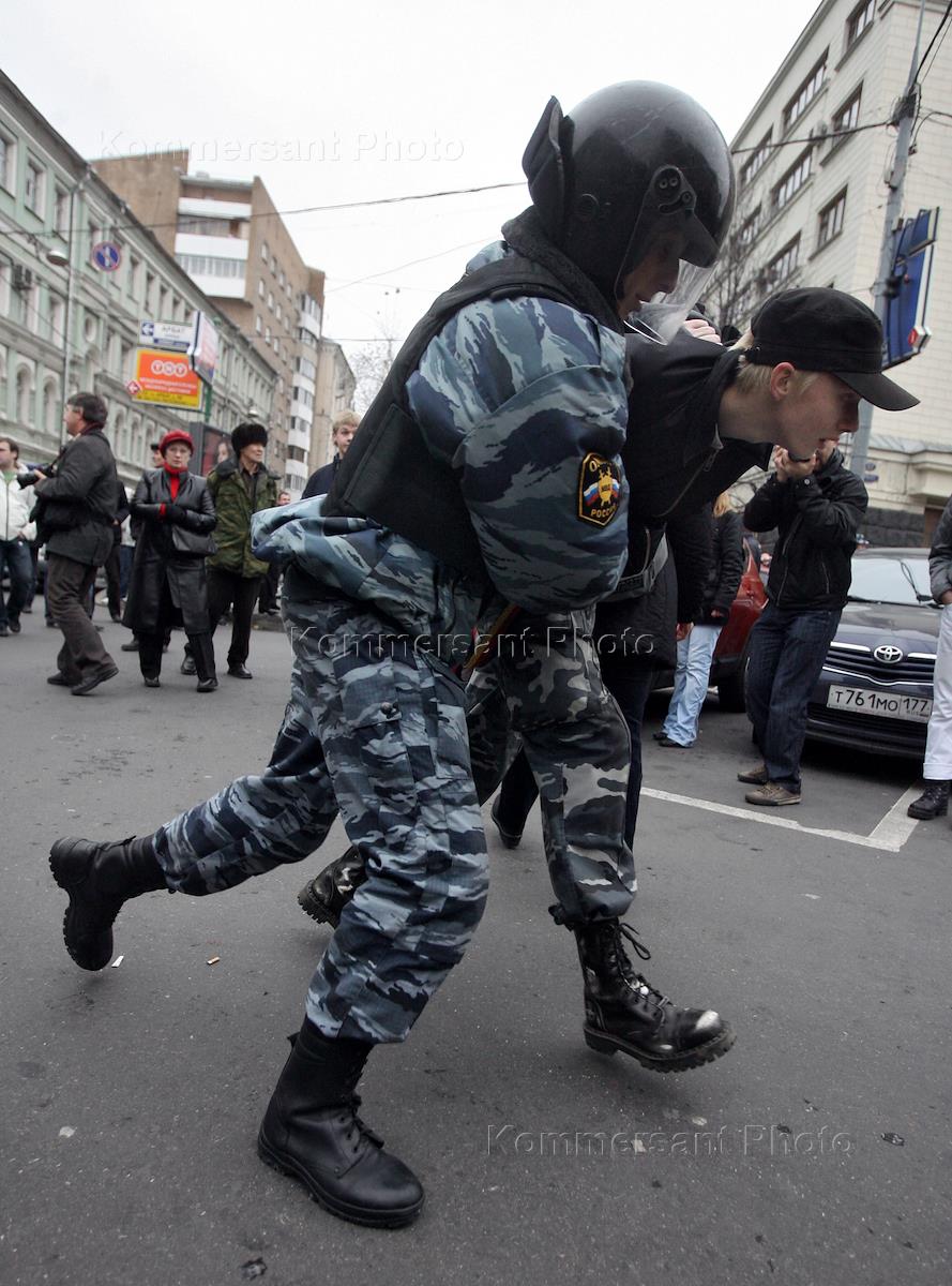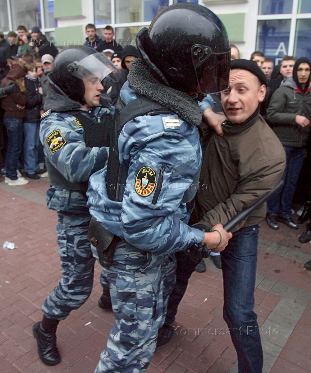 Несанкционированная акция "Русский марш", организованная движением против нелегальной иммиграции (ДПНИ), прошла на улице Старый Арбат. Задержание участников акции.