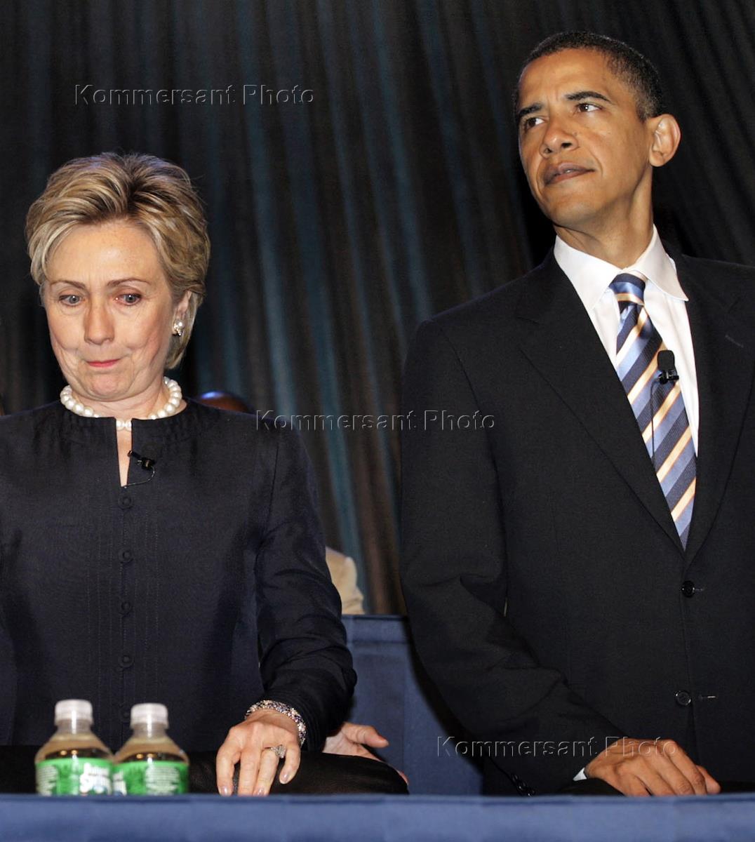 Сенаторы от Демократической партии США Хилари Клинтон (слева) и Барак Обама (справа).