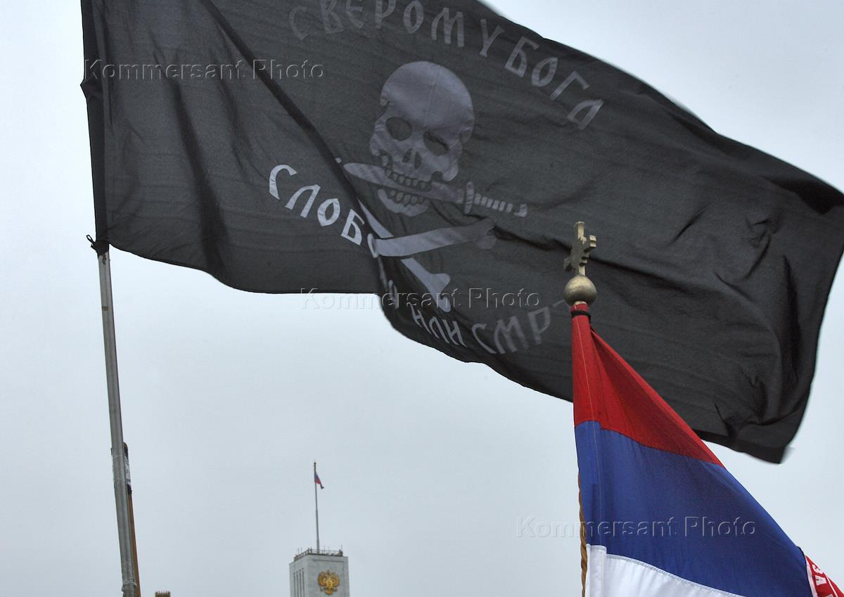 Participants of the Russian March, organized by "People's Union" party and "Russian Image" movement. The march took place at the Tarasa Shevchenko embankment.