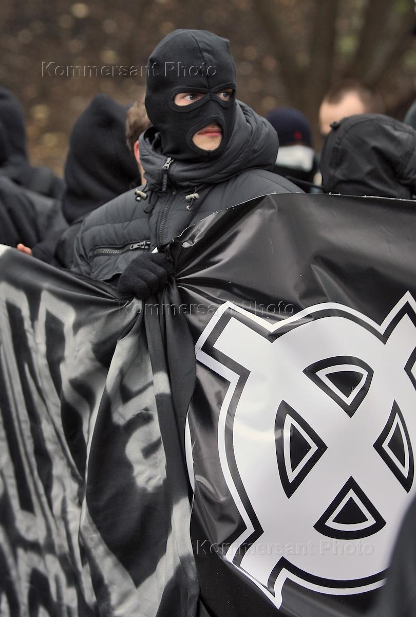 Акция "Русский марш", организованная партией "Народный Союз", Русским общенациональным союзом, Союзом "Христианское возрождение" и другими организациями, прошла на набережной Тараса Шевченко. Участник акции в костюме русского богатыря.