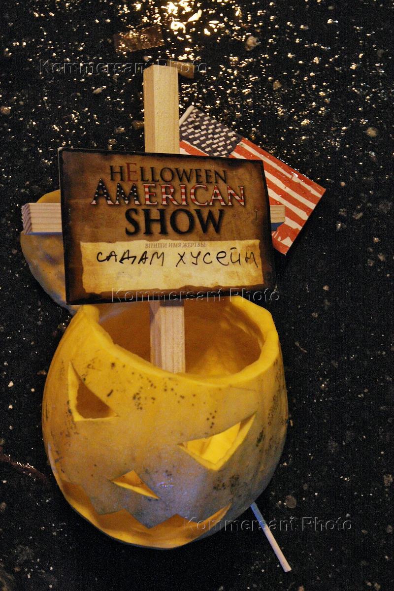 Activists of the youth movement "Nashi" during a protest rally timed to the American holiday Halloween. Participants called on Americans to think about the consequences of U.S. policy. The rally was held near the U.S. embassy.