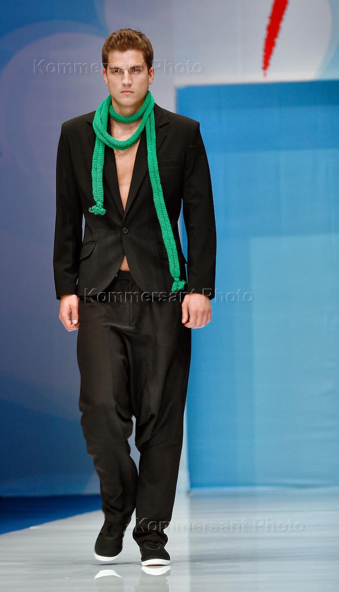 The Russian Fashion Week. Singer Bogdan Titomir (in the centre) on demonstration of a new collection of Italian designer Alessandro de Benedetti.