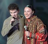Певец, композитор Олег Газманов (слева) и певица Надежда Бабкина во время концерта в Государственном Кремлевском Дворце. Концерт посвящен 50-летнему юбилею Газманова.