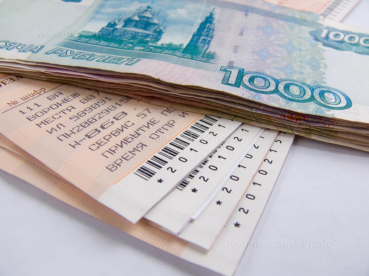 Жанровый снимок. Денежные купюры и железнодорожные билеты ОАО "РЖД".
