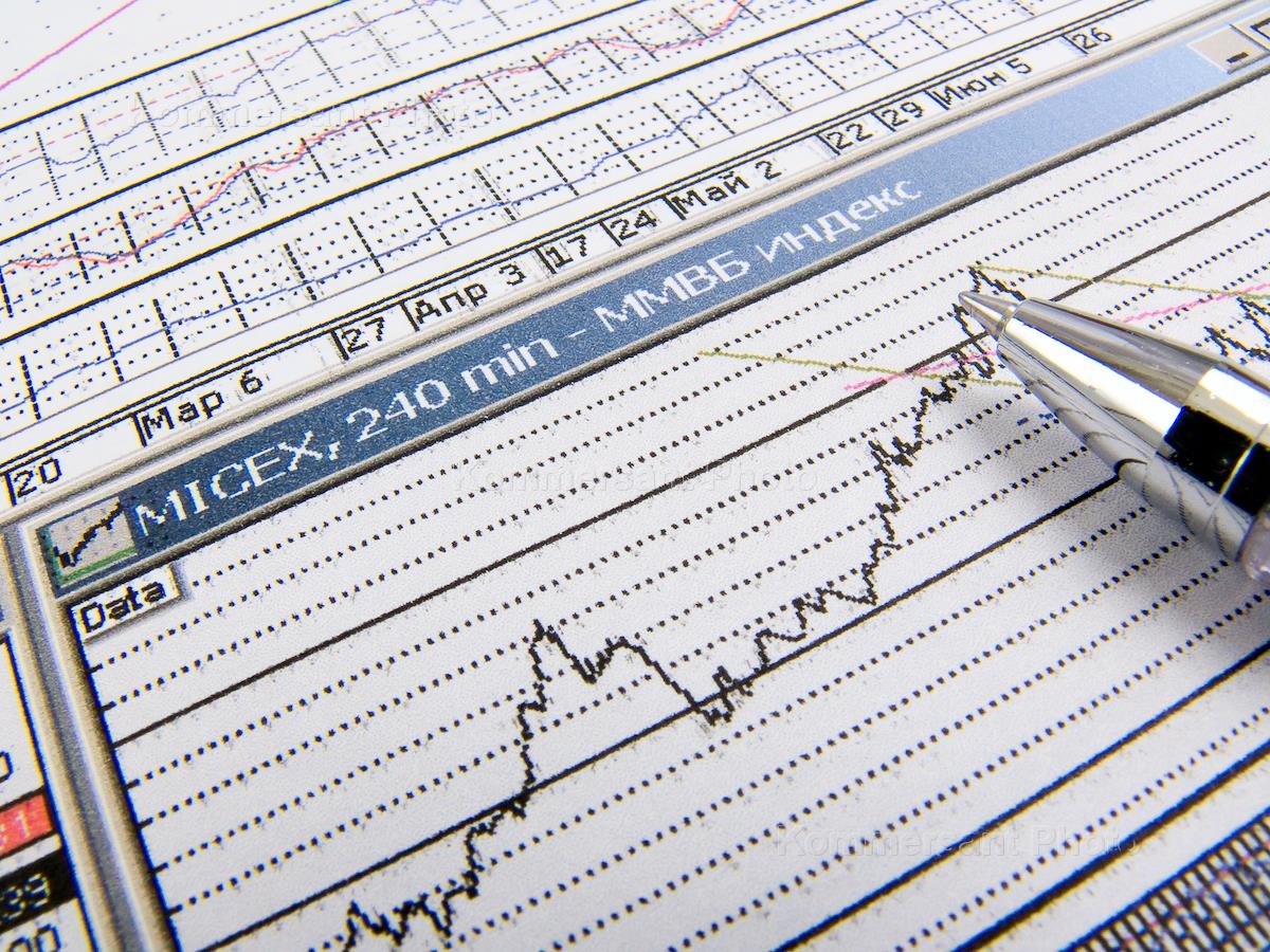 Жанровая фотография. Ручка лежит на графике изменения индекса ММВБ.