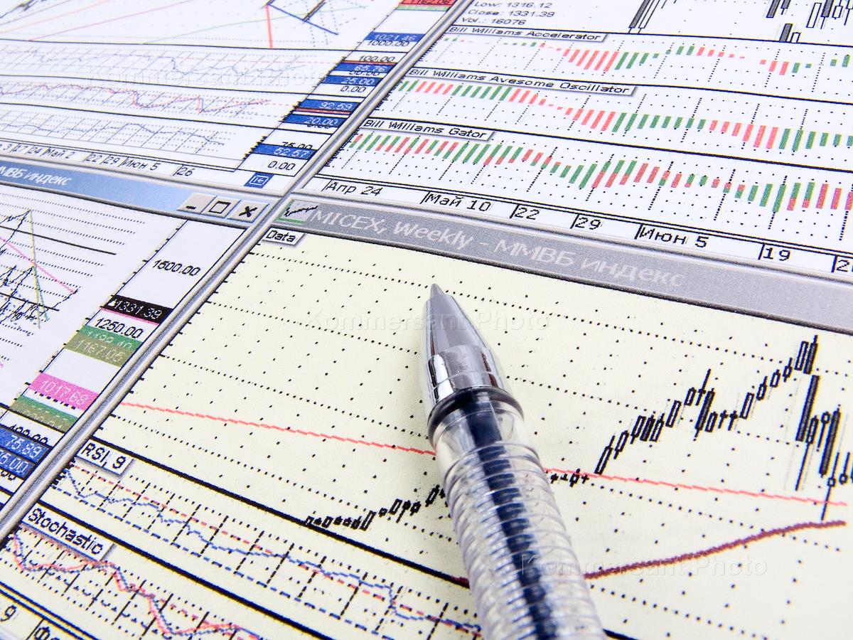 Жанровая фотография. Ручка лежит на графике изменения индекса ММВБ.