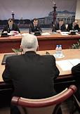 Губернатор Санкт-Петербурга Валентина Матвиенко (слева) и министр юстиции России Александр Коновалов (справа) перед началом совещания по вопросам правоохранительной деятельности в России.