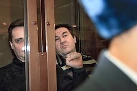 Бывший начальник Департамента федеральной службы по контролю за оборотом наркотиков генерал-лейтенант Александр Бульбов (справа) на заседании Московского городского суда во время рассмотрения уголовного дела в отношении Александра Бульбова, который обвиняется в незаконном прослушивании телефонных переговоров, даче и получении взяток.
