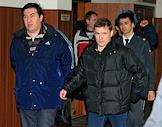 Бывший начальник Департамента федеральной службы по контролю за оборотом наркотиков генерал-лейтенант Александр Бульбов (второй справа) перед началом заседания Московского городского суда. Александр Бульбов обвиняется в незаконном прослушивании телефонных переговоров, даче и получении взяток.