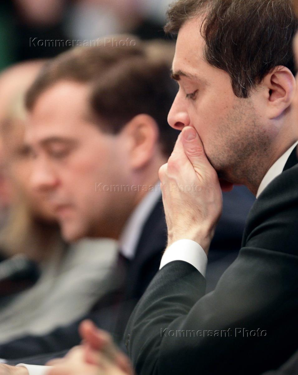 Первый заместитель руководителя администрации президента России Владислав Сурков во время встречи президент России Дмитрия Медведева с членами президиума правления Торгово-промышленной палаты.
