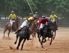 Матч по конному поло на элитном курорте Каса де Кампа (Casa de Campo) на побережье Карибского моря.