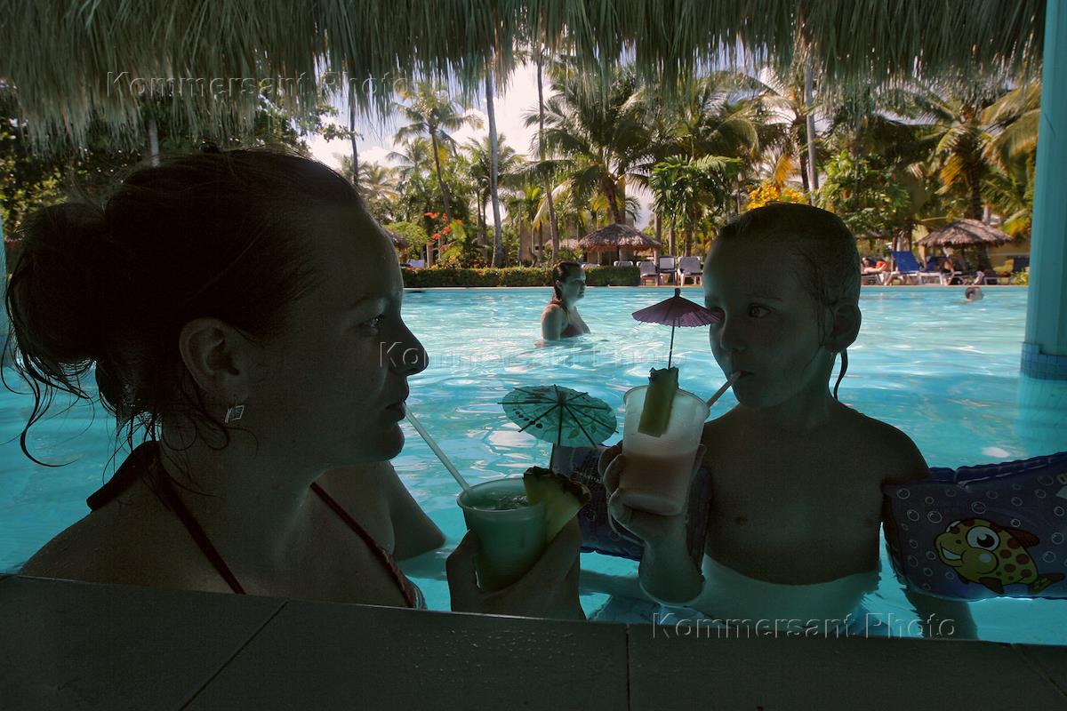Туристический отдых в Доминиканской республике. Отдыхающие катаются на каяках.