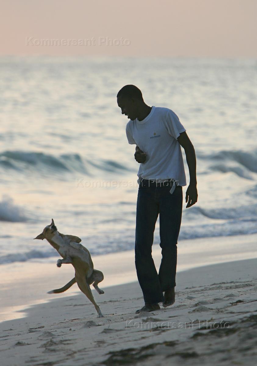 Прогулка с собакой по побережью.