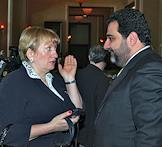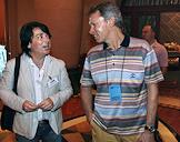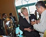 Международный инвестиционный форум Russia Investment Roadshow. Представитель президента в Национальном банковском совете Татьяна Парамонова (слева) и директор НИИ статистики Госкомстата России Василий Симчера (справа) в перерыве пленарного заседания форума в отеле "Атлантис".