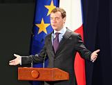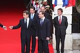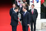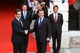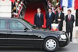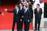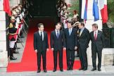 Слева направо: президент Франции Николя Саркози, мэр Ниццы Кристиан Эстроси, генеральный секретарь совета Европейского союза Хавьер Солана и министр иностранных дел Франции Бернар Кушнер во время 22-ого саммита Россия–Евросоюз.