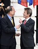 Генеральный секретарь Совета Евросоюза Хавьер Солана (слева) и министр иностранных дел Франции Бернар Кушнер (справа) во время 22-ого саммита Россия–Евросоюз.