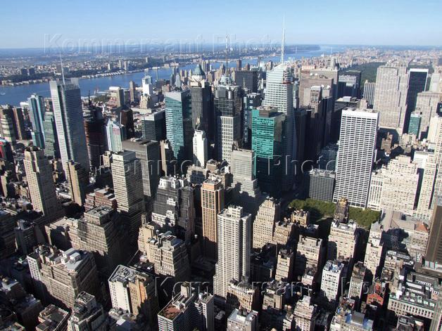 Вид на Манхэттен со смотровой площадки небоскреба Эмпайр Стейт билдинг.