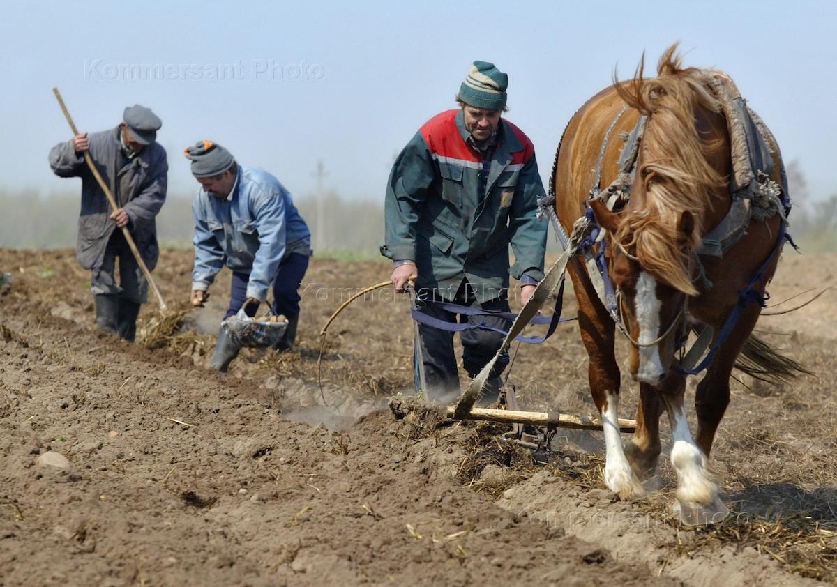 Жанровое фото. Комбайнеры одного из колхозов обедает во время уборочной кампании.