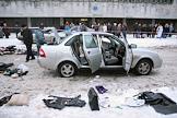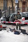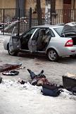 Сотрудники правоохранительных органов на месте взрыва в автомобиле у станции метро "Удельная" в Выборгском районе города. Три человека, в том числе маленький ребенок, погибли в результате взрыва.