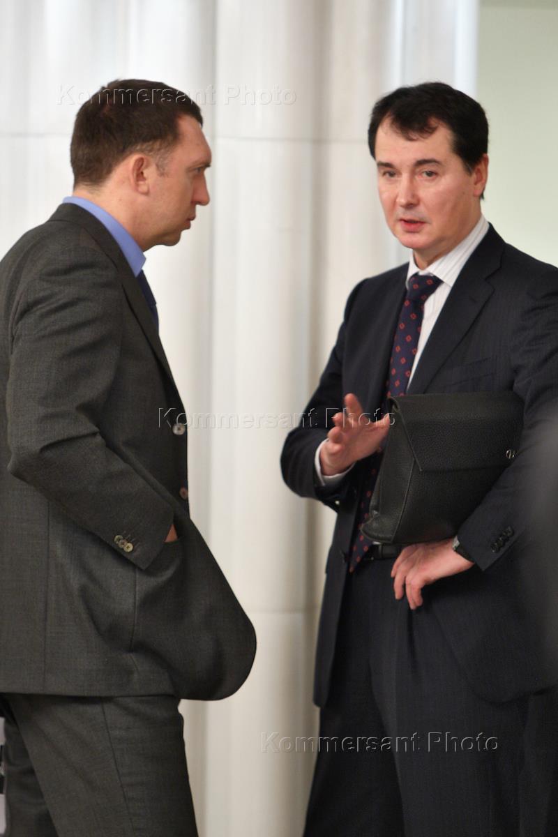 Слева направо: президент Российского союза промышленников и предпринимателей (РСПП) Александр Шохин, председатель Наблюдательного совета "БазЭл" (Базовый элемент) Олег Дерипаска и руководитель Федеральной антимонопольной службы России Игорь Артемьев перед началом заседания Совета по конкурентноспособности и предпринимательству при правительстве России. Заседание прошло в Доме правительства России.