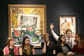 Торги аукционного дома Christie’s прошли в рамках "русской недели" в Лондоне. Картина художника Натальи Гончаровой "Натюрморт с арбузами" (в центре).