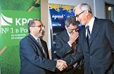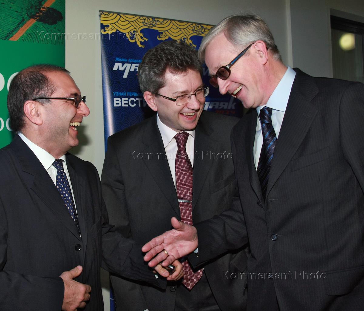 Слева направо: президент Ассоциации Банков Центральной России Гарегин Тосунян, президент Московской международной валютной биржи (ММВБ) Константин Корищенко, президент Российского союза промышленников и предпринимателей (РСПП) Александр Шохин перед началом церемонии вручения премии журнала "Итоги" "День Банкира 2008" в гостинице "Балчуг Кемпински".