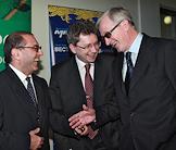 Слева направо: председатель Национального агентства прямых инвестиций (НАДИ) Игорь Вдовин, президент Российского союза промышленников и предпринимателей (РСПП) Александр Шохин и президент Московской международной валютной биржи (ММВБ) Константин Корищенко перед началом церемонии вручения премии журнала "Итоги" "День Банкира 2008" в гостинице "Балчуг Кемпински".