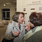 Искусствовед Мария Байбакова (в центре) на презентации книги Луизы Бак (Louisa Buck) и Джудит Грир (Judith Greer) "Искусство в собственность. Настольная книга коллекционера современного искусства". Презентация прошла в галерее "Пространство Baibakov art projects" на территории фабрики "Красный Октябрь".