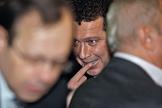 Председатель Совета директоров "Альфа-Групп" Михаил Фридман (в центре) перед началом церемонии вручения литературной премии "Большая книга" 2008 года. Награждение прошло в Доме Пашкова (Российская государственная библиотека).