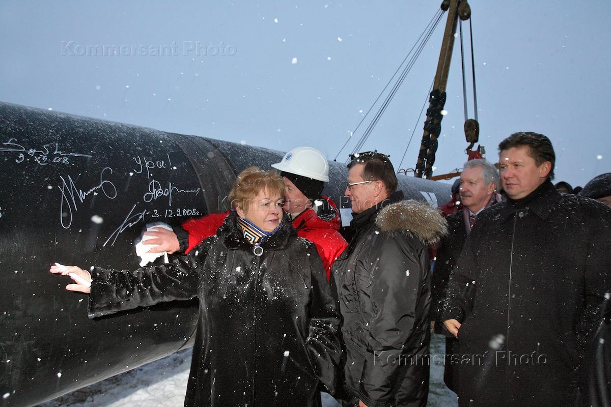 Слева направо: губернатор Ямало-Ненецкого автономного округа Юрий Неелов, первый заместитель председателя правительства России Виктор Зубков, глава РАО "Газпром" Алексей Миллер, глава Республики Коми Владимир Торлопов и генеральный директор ОАО "Сварочно-монтажный трест" Валентина Беляева во время торжественных мероприятий, посвященных сварке первого стыка газопровода "Бованенково-Ухта" в рамках реализации проекта "Ямал".