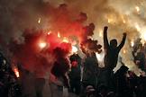 Групповой этап Кубка УЕФА. Болельщики во время футбольного матча между командами "Спартак" (Москва, Россия) и НЕК (Неймеген, Голландия). Матч прошел на стадионе "Лужники".