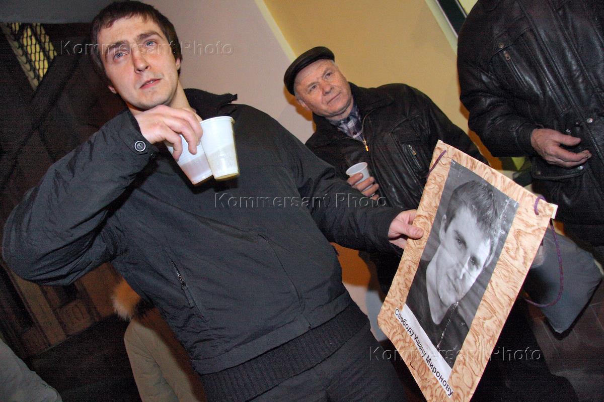 Обвиняемый по делу о покушении на Анатолия Чубайса, Иван Миронов во время освобождения из Следственного изолятора № 1 (СИЗО "Матросская тишина").