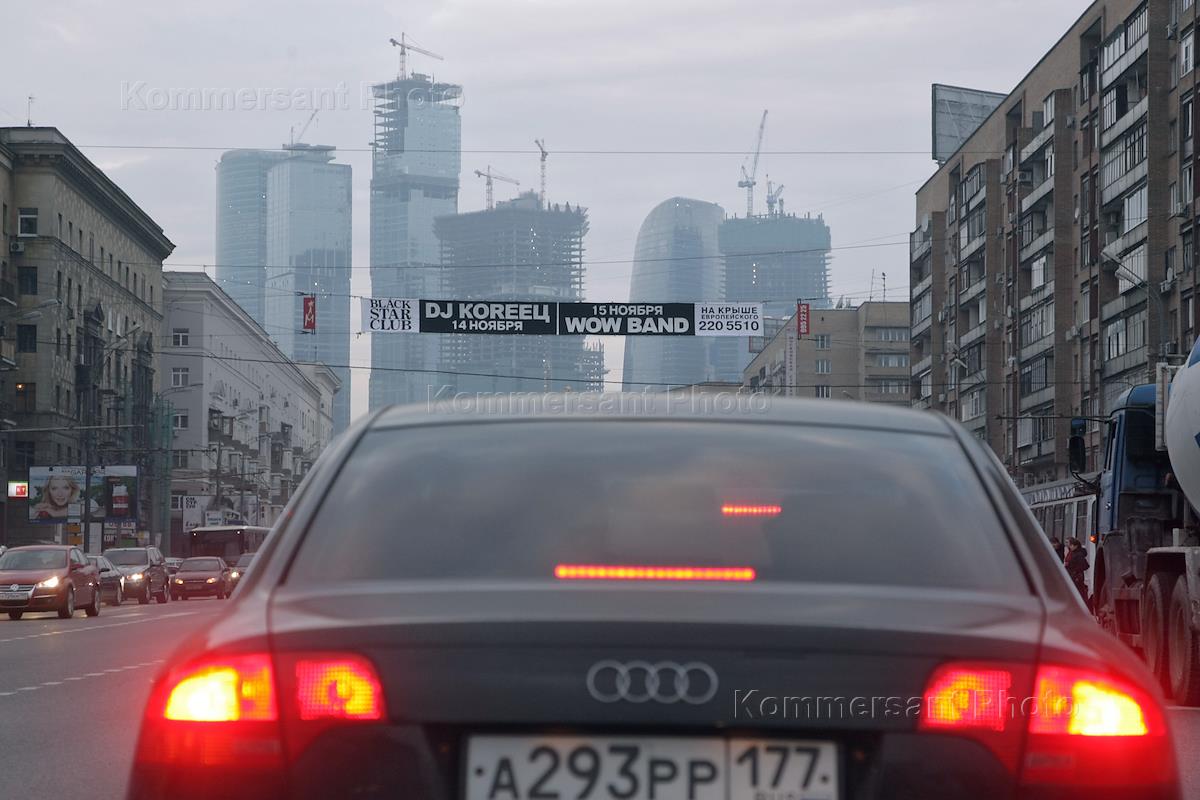 Виды Москвы. Автомобиль на Кутузовском проспекте. Московский международный деловой центр (ММДЦ) "Москва-Сити".