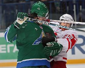 32-й тур Континентальной хоккейной лиги (КХЛ). Матч между командами "Салават Юлаев" (Уфа) и "Спартак" (Москва) на стадионе УСА Уфа-Арена.