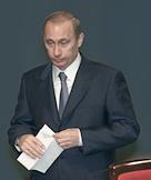 Президент России Владимир Путин и председатель Московской Хельсинской группы Людмила Алексеева читают записки, присланные делегатами Гражданского форума общественных объединений и союзов России. Открытие форума состоялось в Государственном Кремлевском Дворце.