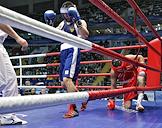 Кубок мира по боксу 2008 по версии Международной ассоциации любительского бокса (AIBA). Боксер из Армении Андраник Хакобяан (слева) и боксер из Венесуэлы Алфонсо Бланко (справа) во время боя во Дворце спорта "Мегаспорт".