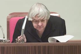 Председатель Московской Хельсинской группы Людмила Алексеева в президиуме "Гражданского форума", который состоялся в Государственном Кремлевском Дворце.