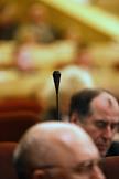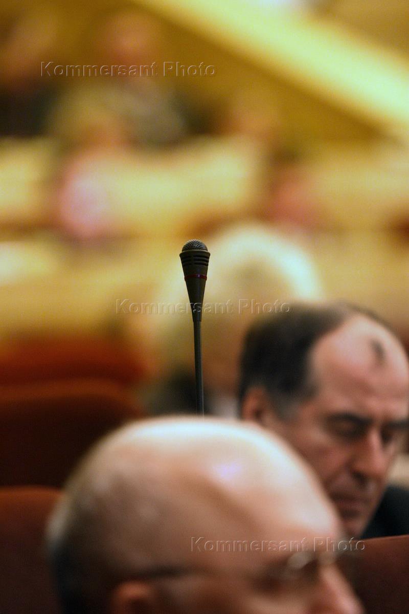 Жанровая фотография. Микрофон в зале заседаний конференции новосибирского отделения партии "Единая России".