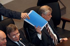 Глава Представительства Калининградской области в Москве Владимир Шумейко во время пленарного заседания Совета Федерации России.