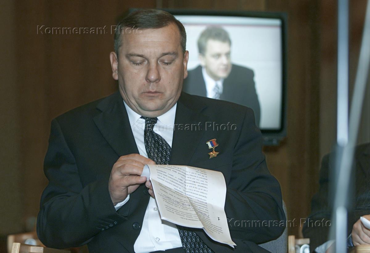 Герой России, губернатор Ульяновской области Владимир Шаманов во время селекторного совещания, проводимого заместителем председателя Правительства России Виктором Христенко с руководителями российских регионов. Совещание состоялось в пресс-центре Дома правительства.