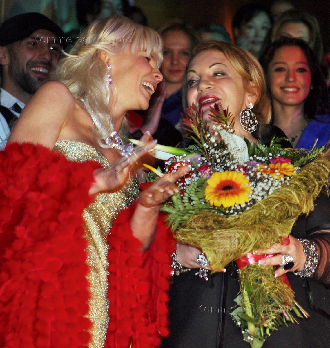 Модельер Надя Сказка (слева) во время специального fashion show "Царская охота" от дизайнера Елены Ярмак (справа) в клубе Soho rooms.