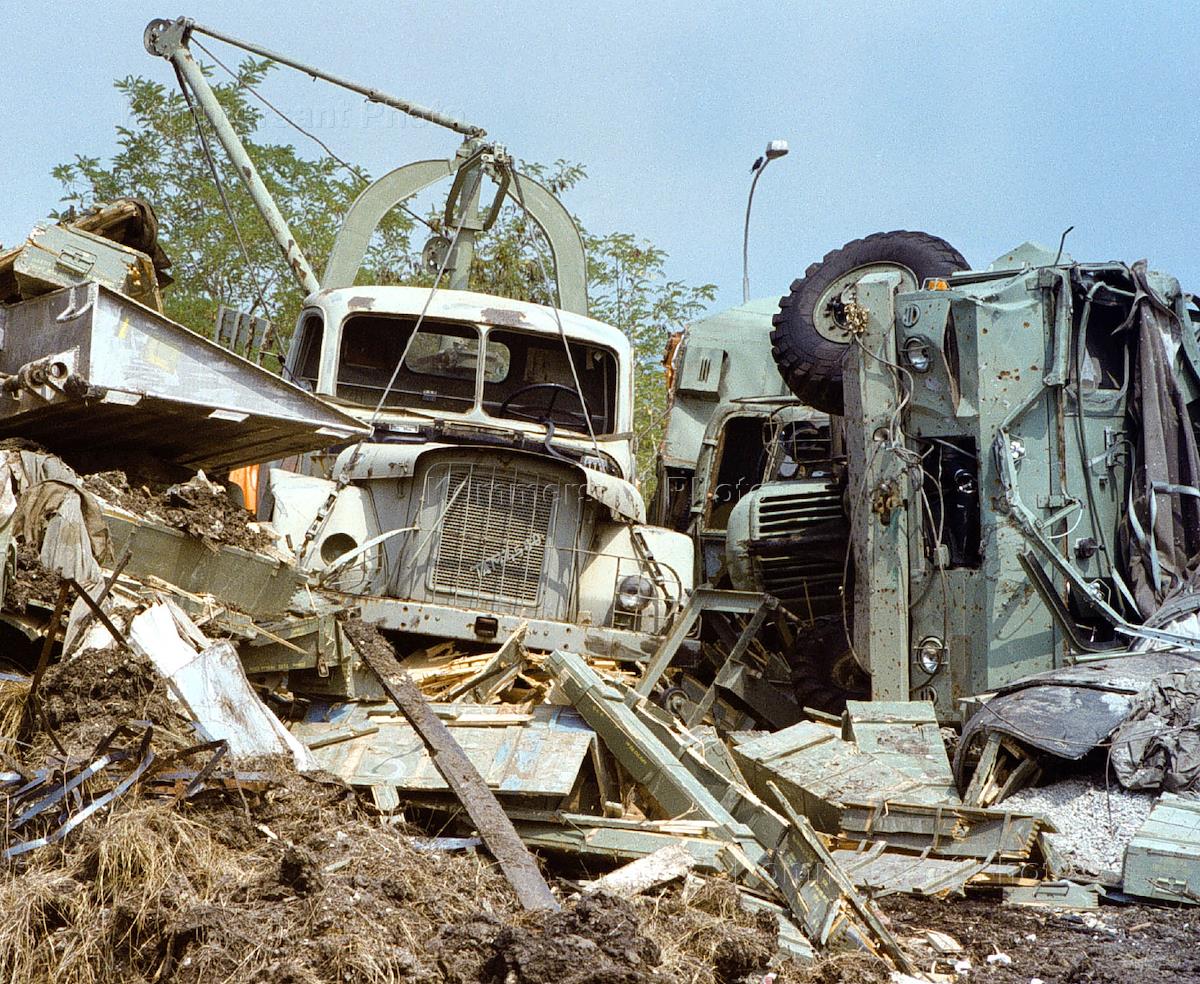 Serbian vehicles and other debris as a result of Nato air raids.