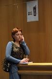 Перед началом встречи председателя правительства России Владимира Путина с председателем правления ОАО "Газпром" Алексеем Миллером в центральном офисе ОАО "Газпром". Журналистка разговариевает по мобильному телефону стоя под знаком запрещающим разговоры по мобильным телефонам.