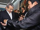 Художник Александр Шилов (справа) на церемонии открытия ретроспективной выставки вице-президента Российской академии художеств Таира Салахова (слева), приуроченной к его 80-летнему юбилею. Выставка открылась в фонде культуры "Екатерина".