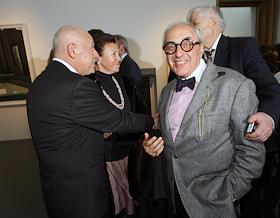 Президент "Альфа-банка" Петр Авен (справа) на церемонии открытия ретроспективной выставки вице-президента Российской академии художеств Таира Салахова (слева), приуроченной к его 80-летнему юбилею. Выставка открылась в фонде культуры "Екатерина".