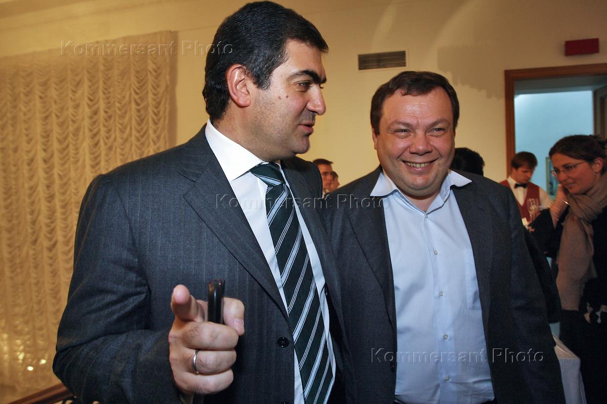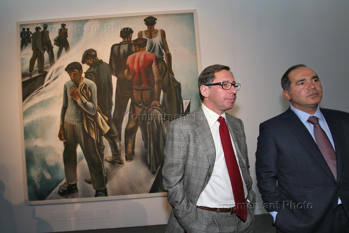 Заместитель генерального директора по корпоративному развитию ООО "Севморнефтегаз" Эльчин Сафаров (слева) и председатель Наблюдательного совета Консорциума "Альфа-Групп" Михаил Фридман (справа) на церемонии открытия ретроспективной выставки вице-президента Российской академии художеств Таира Салахова, приуроченной к его 80-летнему юбилею. Выставка открылась в фонде культуры "Екатерина".